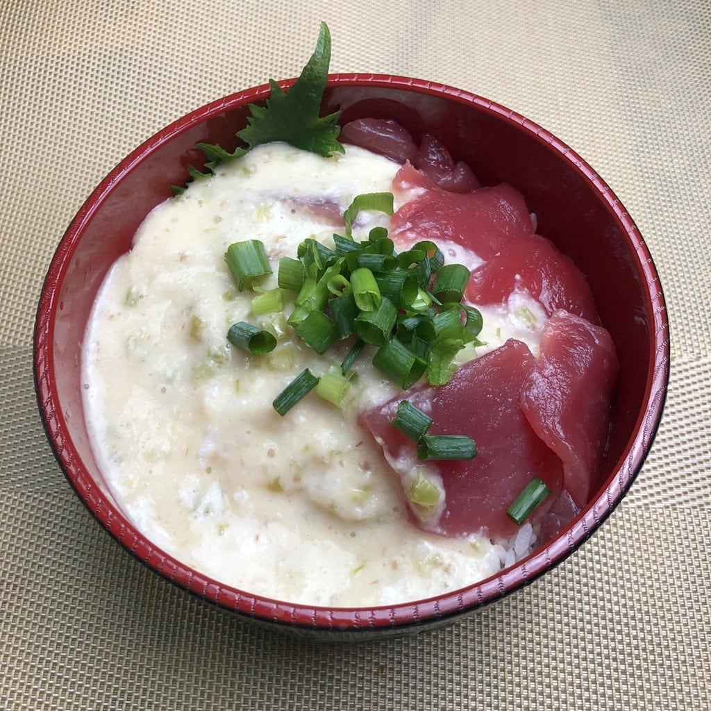 ②自然解凍したとろろ汁を米粒がおよぐ位たっぷりかける。